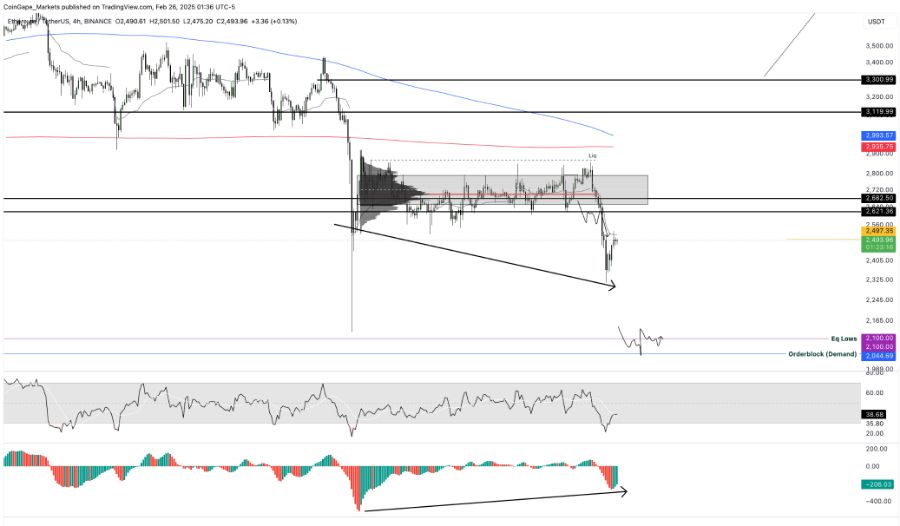 بر اساس دادههای بازار، از ۱۶ دسامبر ۲۰۲۴ تاکنون، نرخ اتریوم ۴۳ درصد نزول یافته که این امر موجب نزول منحنی میانگین متحرک ۵۰ روزه شده و آن را به میانگین متحرک ۲۰۰ روزه نزدیک کرده است. اگر میانگین متحرک ۵۰ روزه، به صورت نزولی، میانگین متحرک ۲۰۰ روزه را قطع کند، تقاطع مرگ شکل میگیرد که به طور معمول نشانهای از بالا رفتن حجم فروش در بازار است.