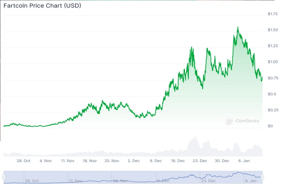 فارتکوین از زمان راهاندازی خود در اکتبر ۲۰۲۴، توسعه چشمگیری را تجربه کرده و نرخ آن بیش از ۱.۵ میلیون درصد بالا رفته است. این میمکوین که در ابتدا با توسعه کندی مواجه بود، در ابتدای ژانویه ۲۰۲۵، علیرغم شرایط نزولی بازار، به اوج خود رسید و نرخ ۱.۶۰ دلار را ثبت کرد.