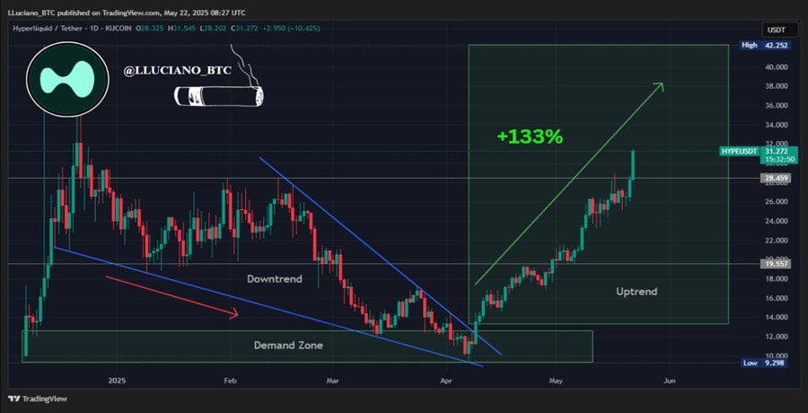 در زمان نگارش این خبر، HYPE در محدوده قیمتی ۳۱ دلار معامله میشود که یک توسعه ۱۵ درصدی نسبت به روز گذشته دارد.