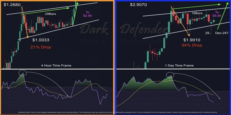 اگرچه نرخ XRP در هفته گذشته حدود ۸ درصد افت کرده است، ولی تحلیلهای تکنیکال نشان میدهند که اگر نرخ این دارایی از لایه ۲.۹۰ دلار عبور کند، میتواند به اهداف ۵.۸۵ و ۸.۷۶ دلار دست یابد.