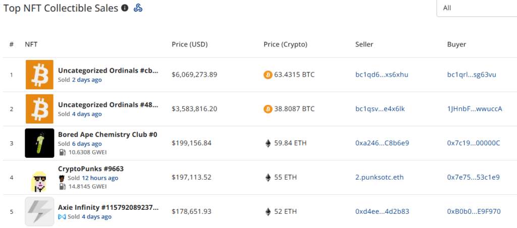 آخرین دادهها نشان میدهد که چندین فروش بزرگ NFT فردی انجام شده است: