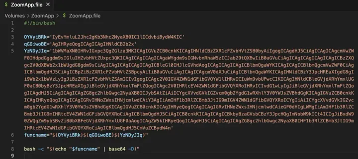 سایت کلاهبرداری از رابط کاربری زوم تقلید کرده و کاربران را به کلیک بر روی دکمه "شروع جلسه" ترغیب میکرد. این دکمه برنامه زوم را باز نمیکرد و به جای آن، یک بسته نصب مخرب به نام “ZoomApp_v.3. 14. dmg” را دانلود میکرد. پس از نصب، این بسته یک اسکریپت به نام “ZoomApp.file” را اجرا میکرد که از کاربران میخواست تا رمز عبور سیستم خود را وارد کنند.