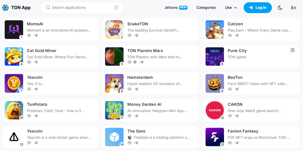 شاید جذابترین بخش نظام زیستی تون کوین، بازیهای رمز ارز کلیکی روی تلگرام باشند. از زمان آغاز بهکار نات کوین، هر روزه شاهد ظهور یک بازی تلگرامی جدید هستیم که وعده سودآوری و کسب ثروت را میدهد. با مراجعه به وبسایت ton.app/en/games میتوانید جدیدترین بازیهای منتشرشده روی پلتفرم تون برای کسب ارز TON رایگان را مشاهده کنید.